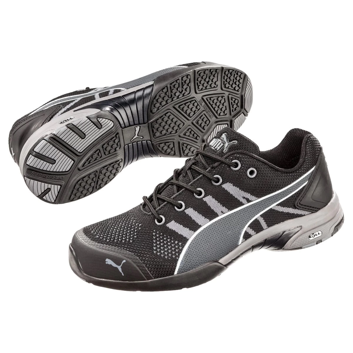 Puma has designed a great looking, athletic style safety shoe for the lady on the team whether she is working in a warehouse or on an electronics assembly line. All day comfort and protection in a slip-resistant lace up sneaker. Almost makes working fun!