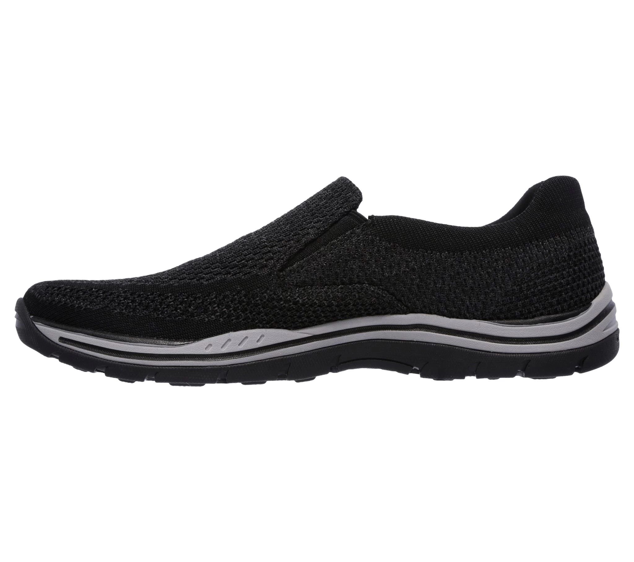 For a casual low-key look, slip on the Skecher Gomel. This sporty, moc style shoe with a mesh fabric upper, will provide all-day comfort on those long awaited weekends.